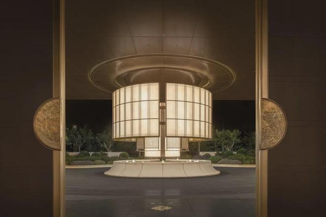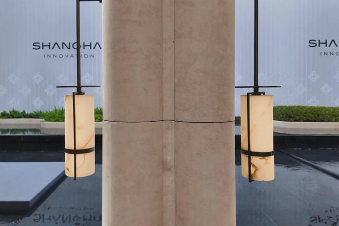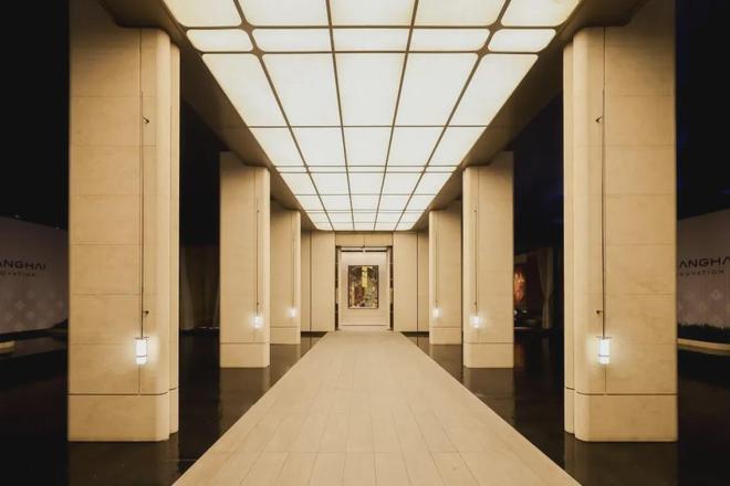 此外,招商序还藉由“吴淞灯塔”及其形制,原创落客雕塑“源流”,定制的云石玻璃、保加利亚进口的沉香米黄石材的底座,搭配以安哥拉黑大理石,营造温润的归家昭示。整个前庭形成艺术感与实用性兼具的环岛式落客区,进一步提升仪式感。
