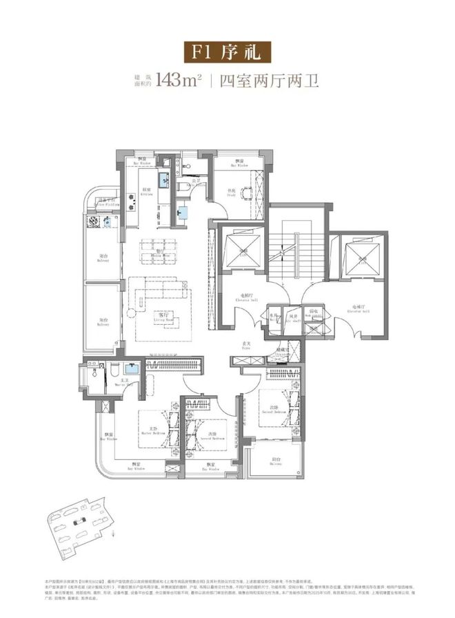 最关键的是,建面约143㎡的产品全系两梯两户、类一梯一户的设计,电梯出来有一个独立的电梯厅,可以作为业主生活的延伸。